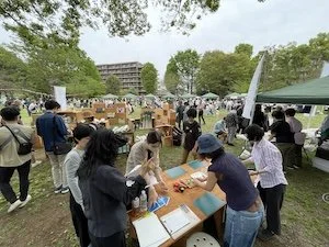 Tenowaichi 2025 community festival was held at Tokyo Metropolitan Musashi Kokubunji Park, organised by the park management (Musashino no Koen Partners). We collaborated with the local vegetable initiative “Kokuvege” to create cyanotype prints using fresh local vegetables.